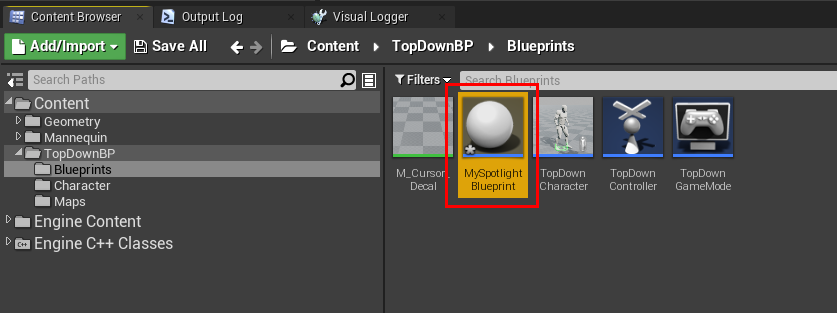 - Blueprint 폴더에서 오른쪽 버튼을 눌러 Blueprint class를 클릭한다.