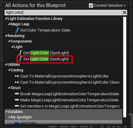 - 다시 construction script로 돌아와 set light color를 선택하여 생성한다.