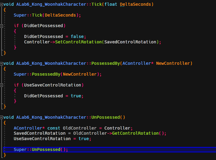 Character 클래스의 PossessedBy, UnPossessed 그리고 Tick 함수를 오버라이드 한다.