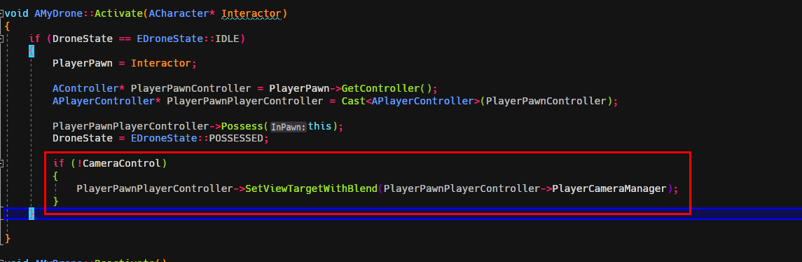 드론을 활성화 시키기 위하여 Activate funtion을 만든다.