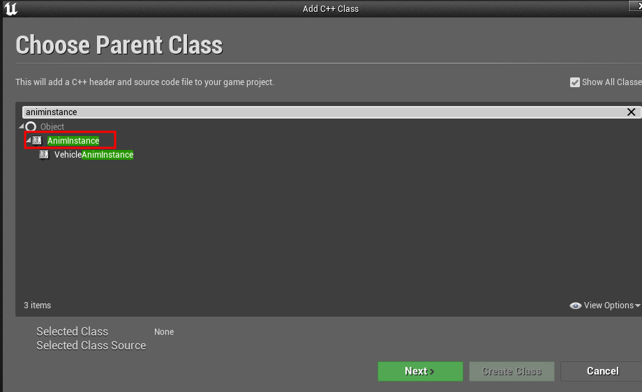 먼저 AnimInstance를 상속받아 c++ 파일을 생성한다.
